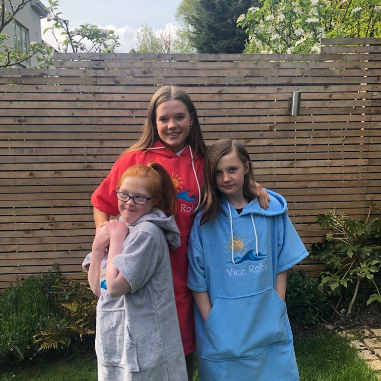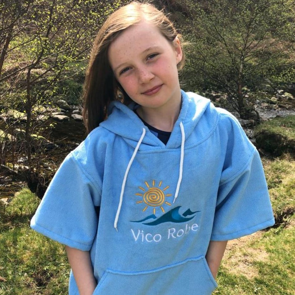 Suitable for Ages 10-16, we offer 300 gsm Microfibre Towel Poncho Robes for the Beach which are warm, luxurious, made from recycled material and wear extremely well turning up as new each season