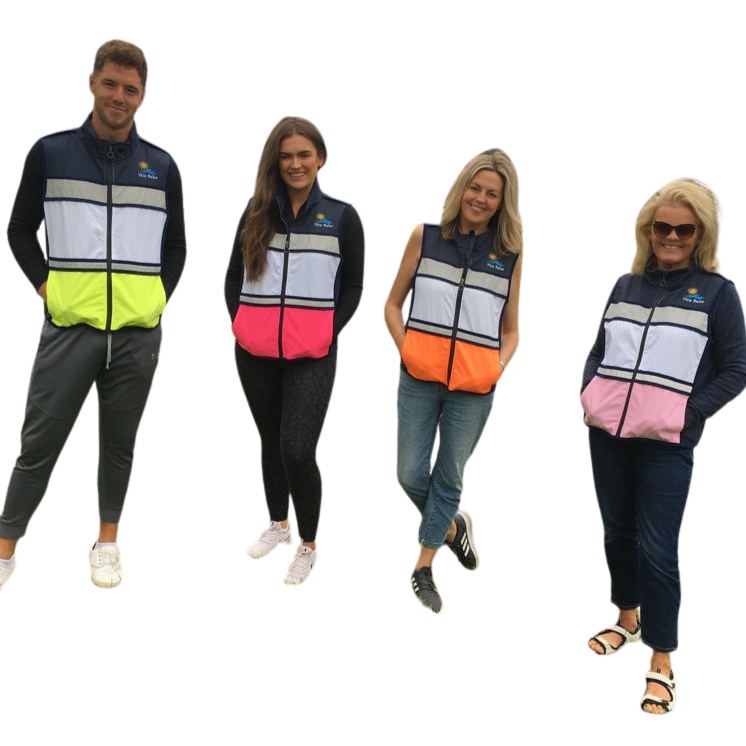 We recommend you chose your Hi-Vis Vest according to your regular size. They are a substantially loose fit to allow for bulky jackets and coats underneath. If you prefer a neater more streamlined look you should consider going down a size. Many walkers who like to dress for the elements will chose their standard size be it small, medium or large, knowing their vest will fit comfortably over their layers. Cyclists, on the other hand, who by virtue of the body heat generated by the strenuous exercise involved may not need many layers underneath and may prefer to go down a size. We suggest size small for older children and teenagers for a loose comfortable fit. For reference, in our featured pictures our female models are all 5ft 5 to 5ft 9 and our male model is 6ft 3.